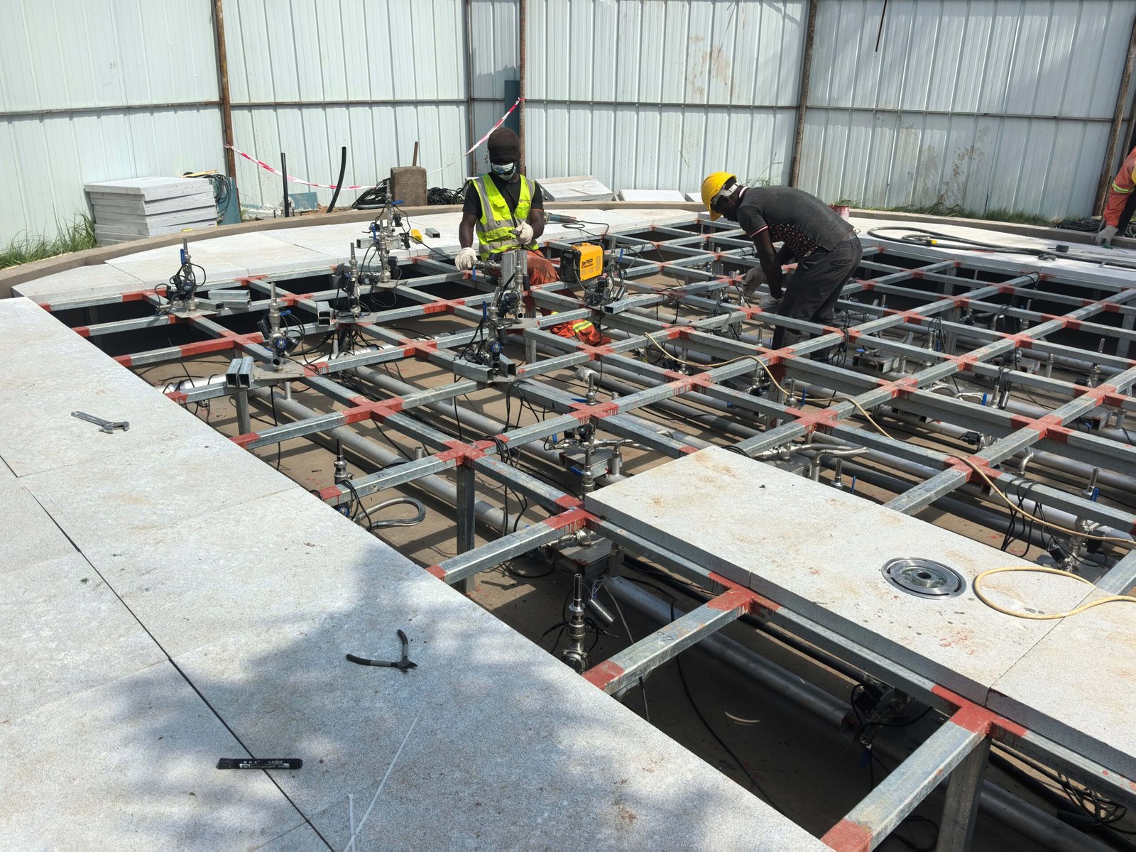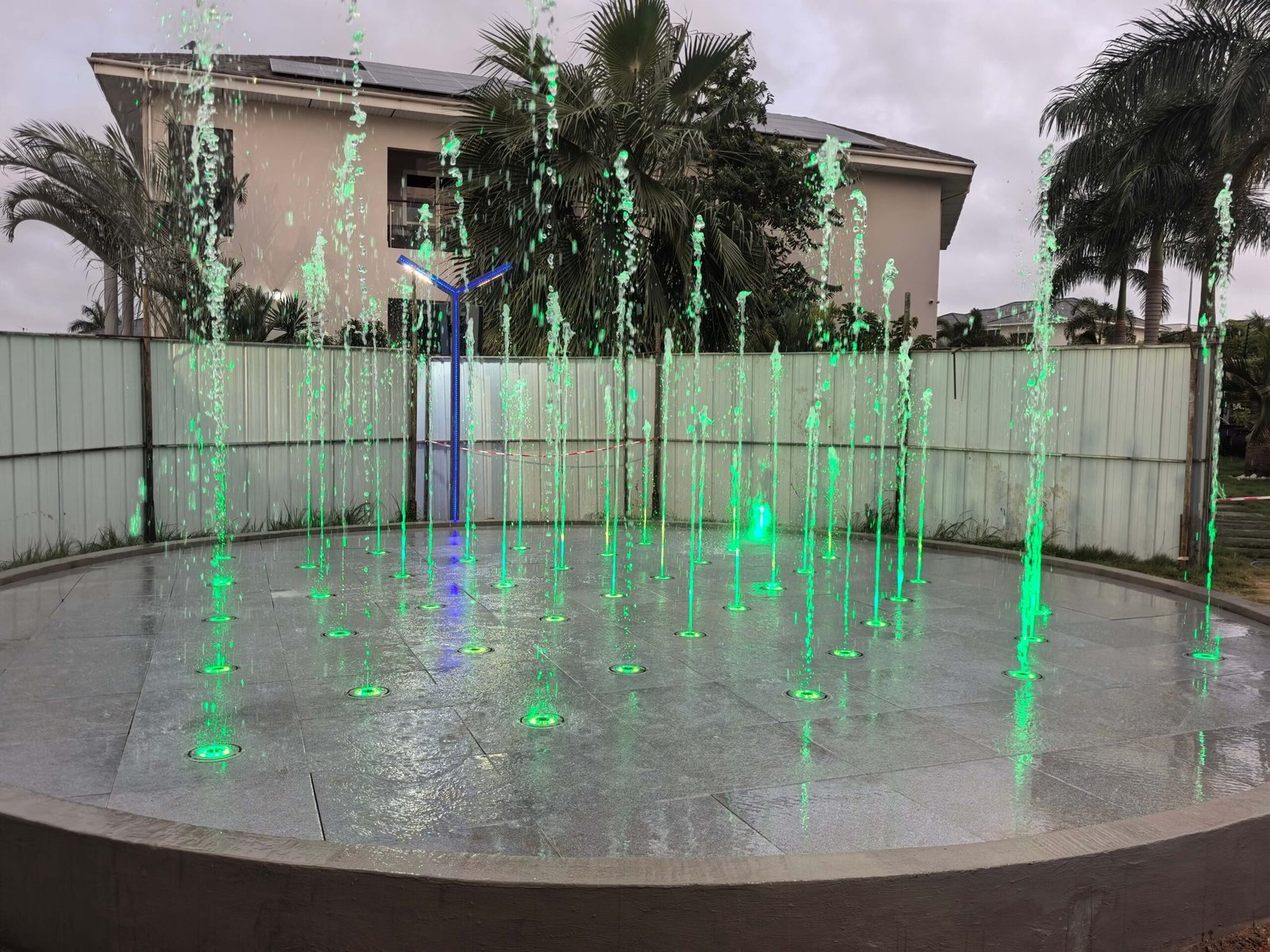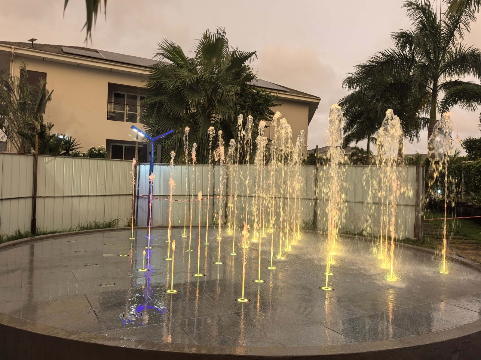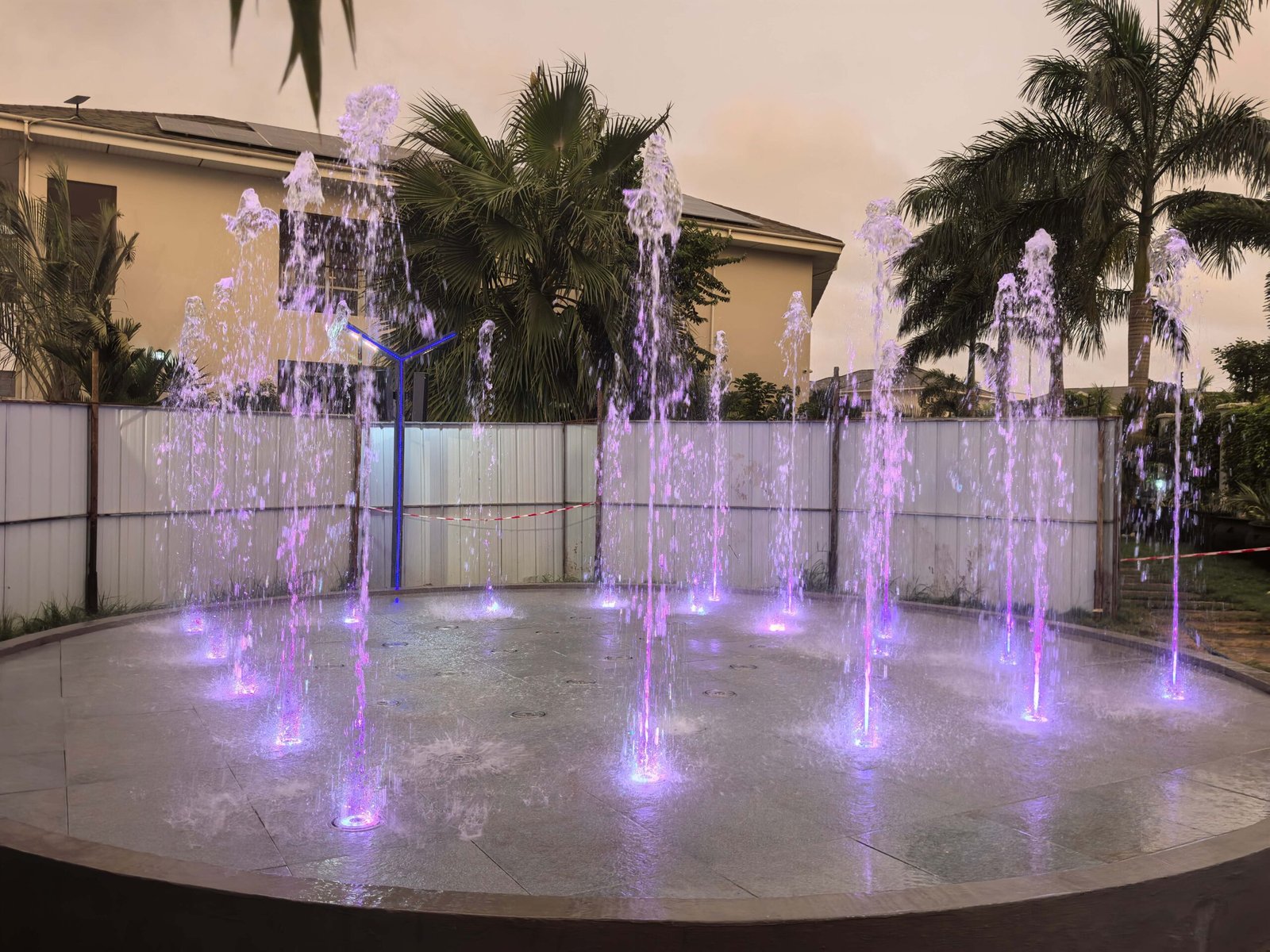 El proyecto de la Fuente Interactiva Seca de Ghana para la Oficina Presidencial, diseñado y fabricado por Changsha Himalaya Music Fountain, cuenta con una estructura de piscina construida con armazón de acero y revestida de mármol. Todos los componentes de la fuente , las estructuras de acero y los elementos de mármol fueron diseñados y producidos de forma independiente por la empresa.
